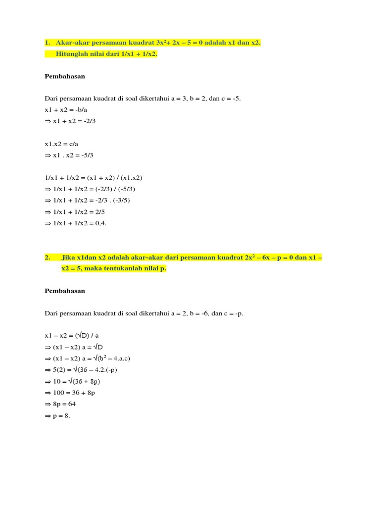 Soal Dan Jawaban Persamaan Kuadrat