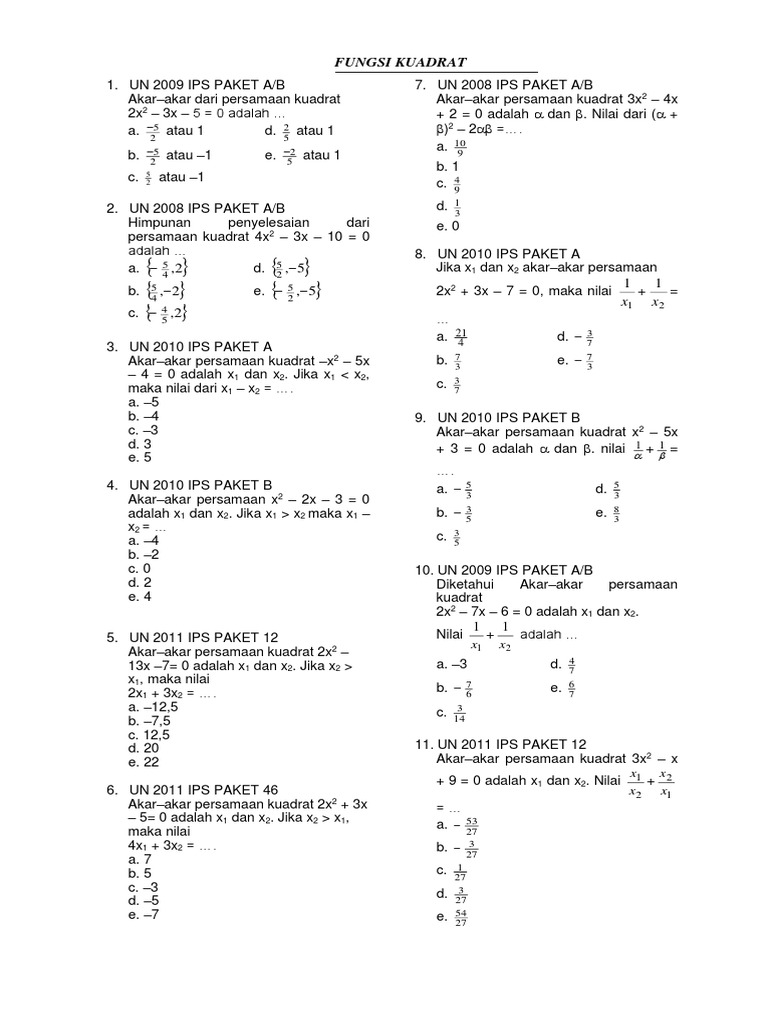 Soal Matematika Persamaan Kuadrat Docx