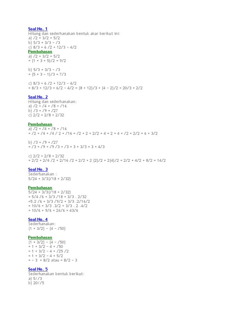Akar Kuadrat Matematika Bersama Soal Soal Dan Jawaban