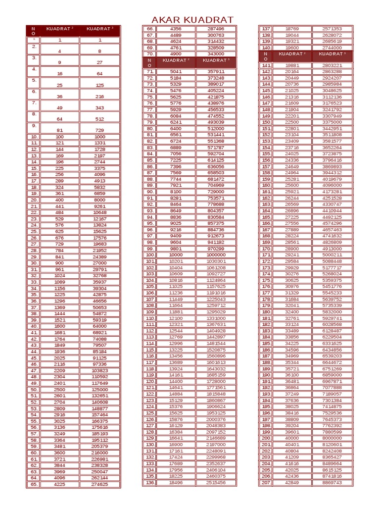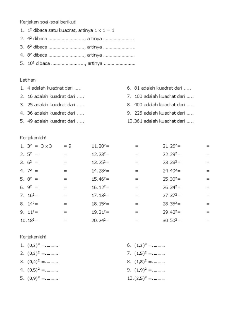 Cara Hitung Kuadrat Dan Akar Kuadrat