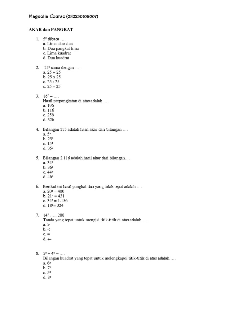 Bilangan Berpangkat Dan Bentuk Akar