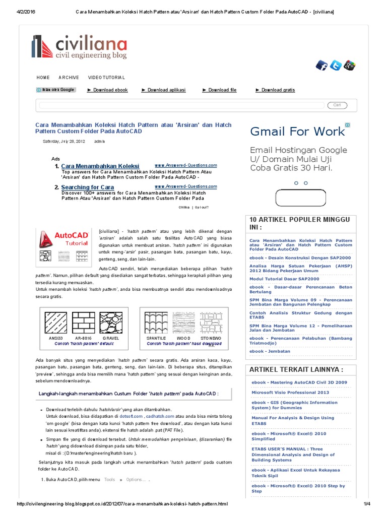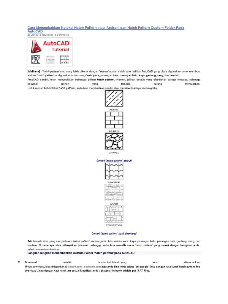 Cara Menambahkan Koleksi Hatch Pattern Atau Arsiran Dan Hatch Pattern Custom Folder Pada Autocad Civiliana Pdf Pdf Document