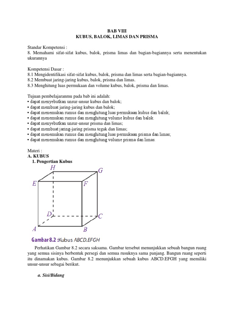 Matematika Kelas 8 Bab Kubus Dan Balok