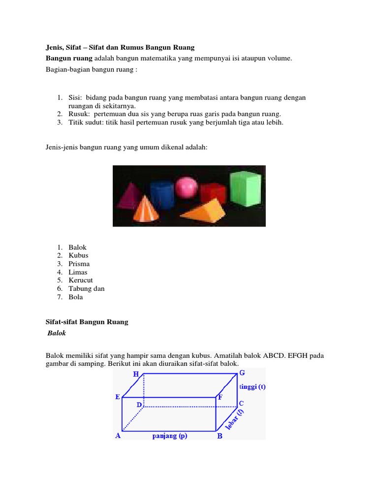 Jenis Sifat Sifat Dan Rumus Bangun Ruang Bangun Ruang Adalah Bangun Matematika Yang Mempunyai Isi Ataupun Volume