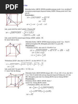Soal Jawab Matematika Peminatan Dimensi Tiga Sebuah Kubus Abcd Efgh Memiliki Panjang Rusuk 4 Cm P Adalah Titik Tengah Cd Tentukan Panjang Ep Pdf Download Gratis