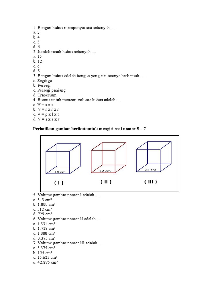 Soal Matematika Kelas 5 Sd Bab 5 Kubus Dan Balok Terbaru Infoloh Com
