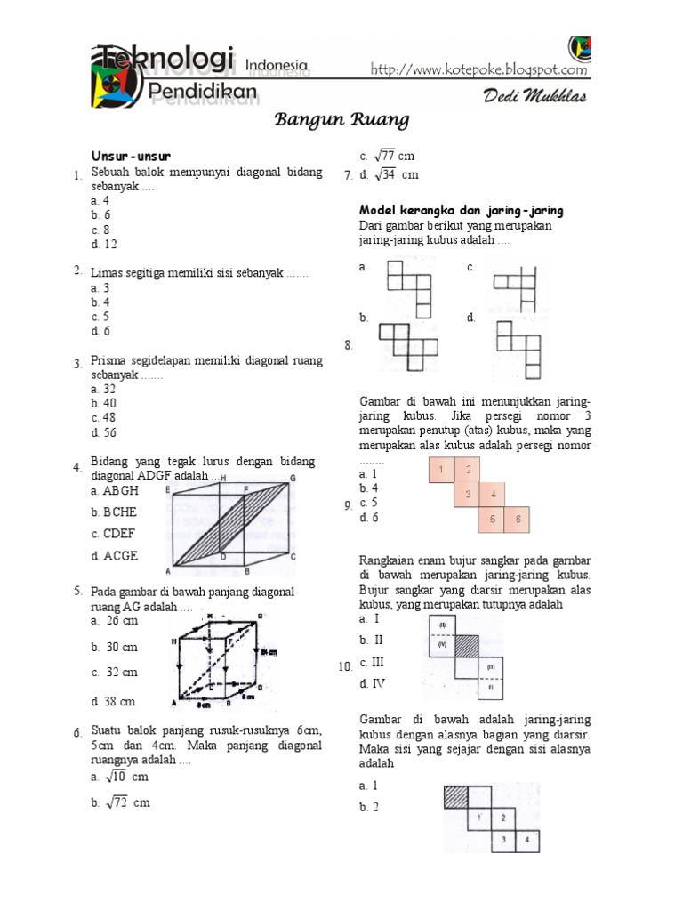Contoh Soal Bangun Ruang Dan Jawaban Pembahasan