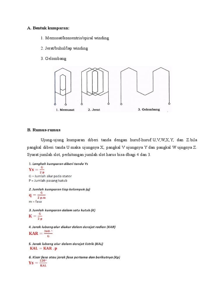Hitungan Bentuk Kumparan Motor Induksi