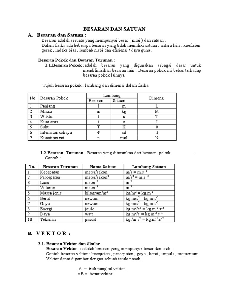 Besaran Dan Satuan A Besaran Dan Satuan