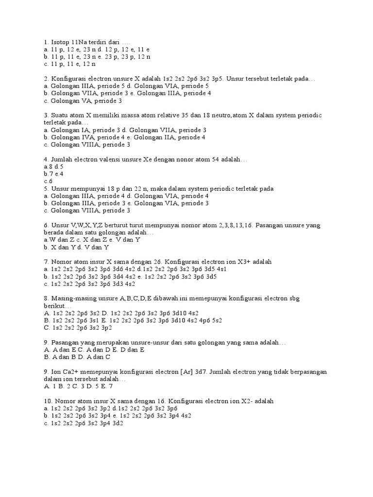 Soal Struktur Atom Dan Konfigurasi Elektron