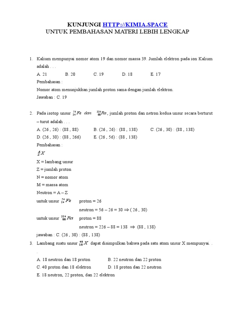 Soal Dan Pembahasan Struktur Atom Les Privat Di Bandung Dan Cimahi Hubungi 6282295202951