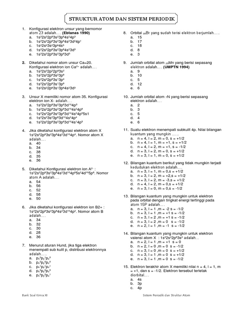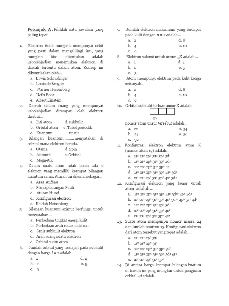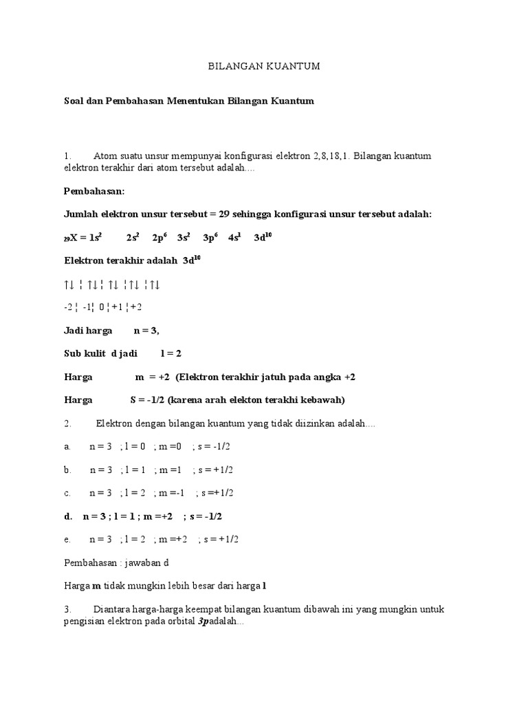 27 Contoh Soal Konfigurasi Elektron Bilangan Kuantum Kumpulan Contoh Soal Resep Kuini
