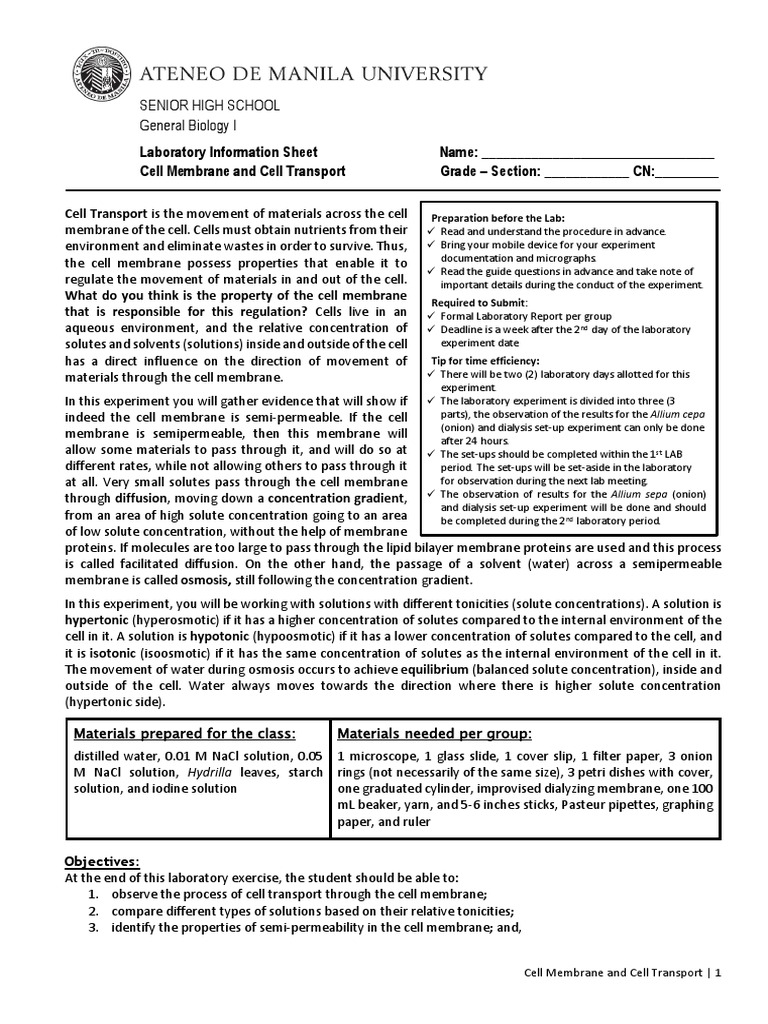 Doc Activity Sheet Observing Plant Cells Bench Ganeb Academia Edu