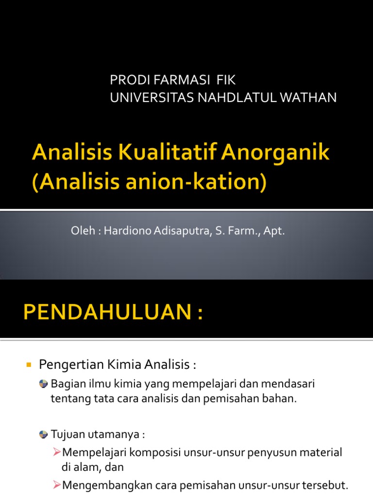 Kimia Analitik Kualitatif Analisis Kualitatif Konvensional Citra Aditya