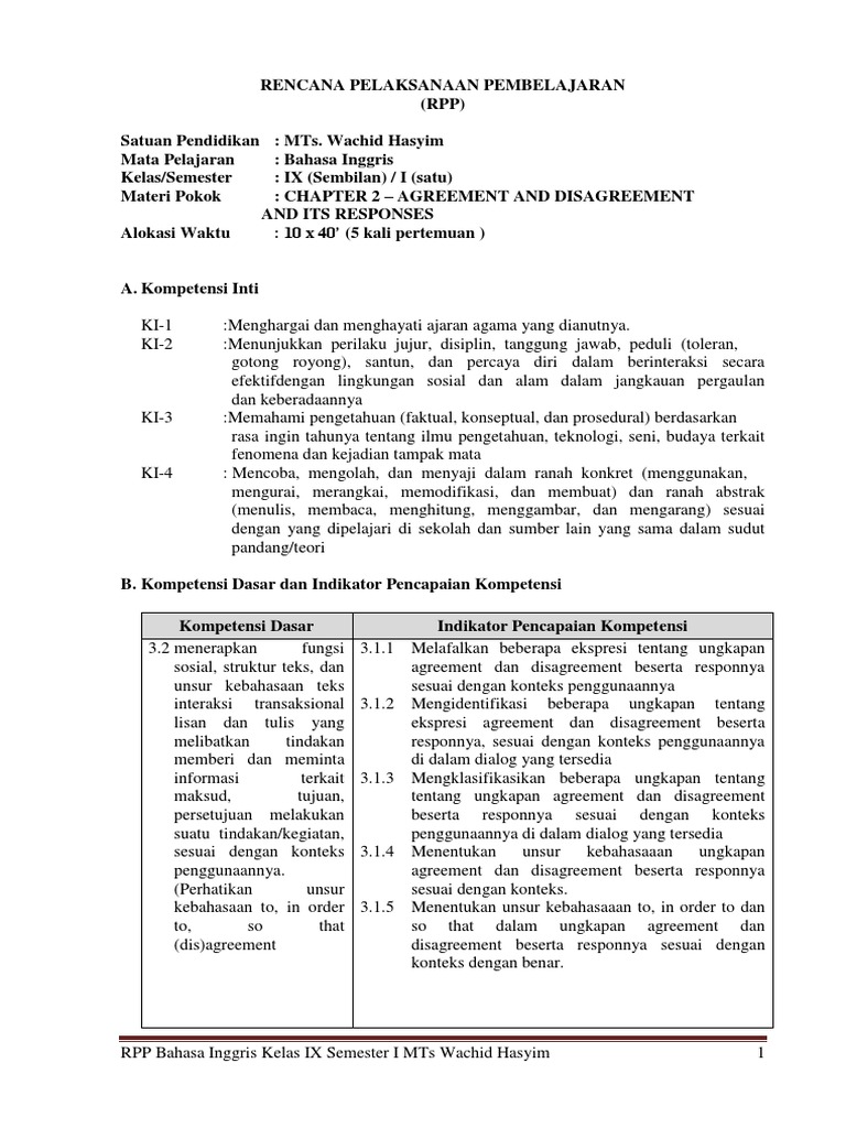 Download Rpp Bahasa Inggris 1 Satu Lembar Smp Kelas 9 Tahun 2020 Infoguruku